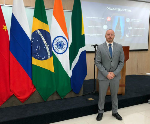 O BRICS é o agrupamento formado por cinco grandes países emergentes – Brasil, Rússia, Índia, China e África do Sul – que, juntos, representam cerca de 42% da população, 23% do PIB, 30% do território e 18% do comércio mundial. Ao longo de 2019, o Brasil exercerá a presidência de turno do BRICS. Um dos focos da presidência brasileira será o reforço da cooperação no combate a crimes transnacionais.