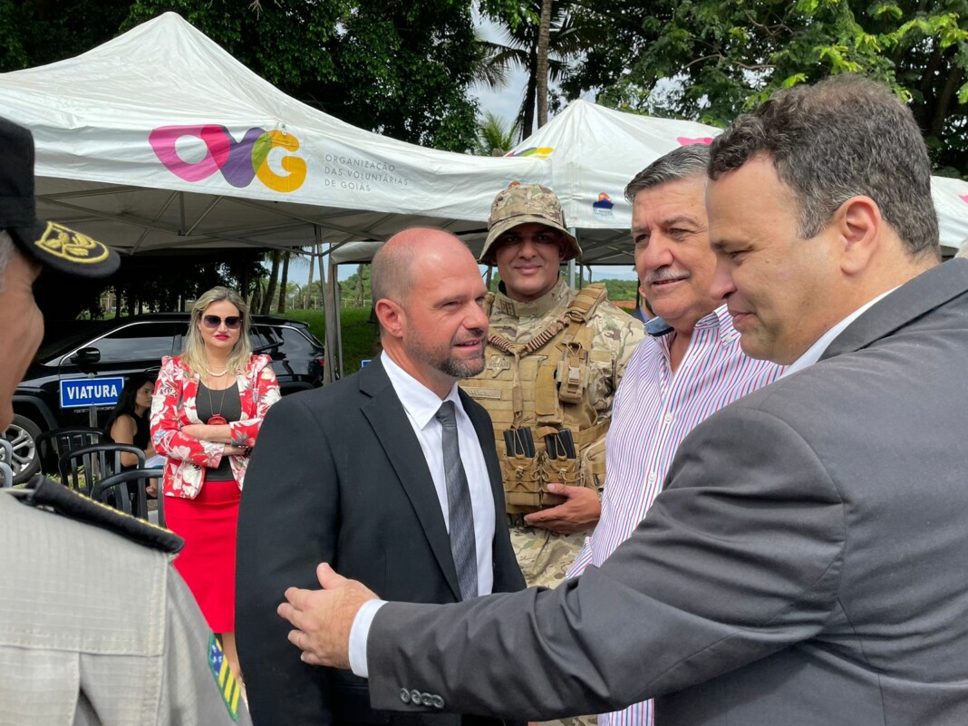 Ao lado de autoridades como o governador Ronaldo Caiado, o secretário de Segurança Pública de Goiás, Renato Brum, e a 1ª dama Gracinha Caiado, Ganga assistiu à transferência de chefia entre o tenente-coronel Edson Luís Souza Melo e seu antecessor, o tenente-coronel Paulo Henrique Ribeiro.