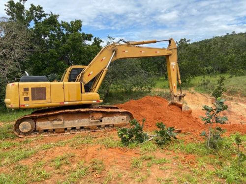 Pouco mais a frente, ainda na mesma propriedade, os investigadores visualizaram uma máquina retroescavadeira e um caminhão, próximo a área da sede do imóvel.