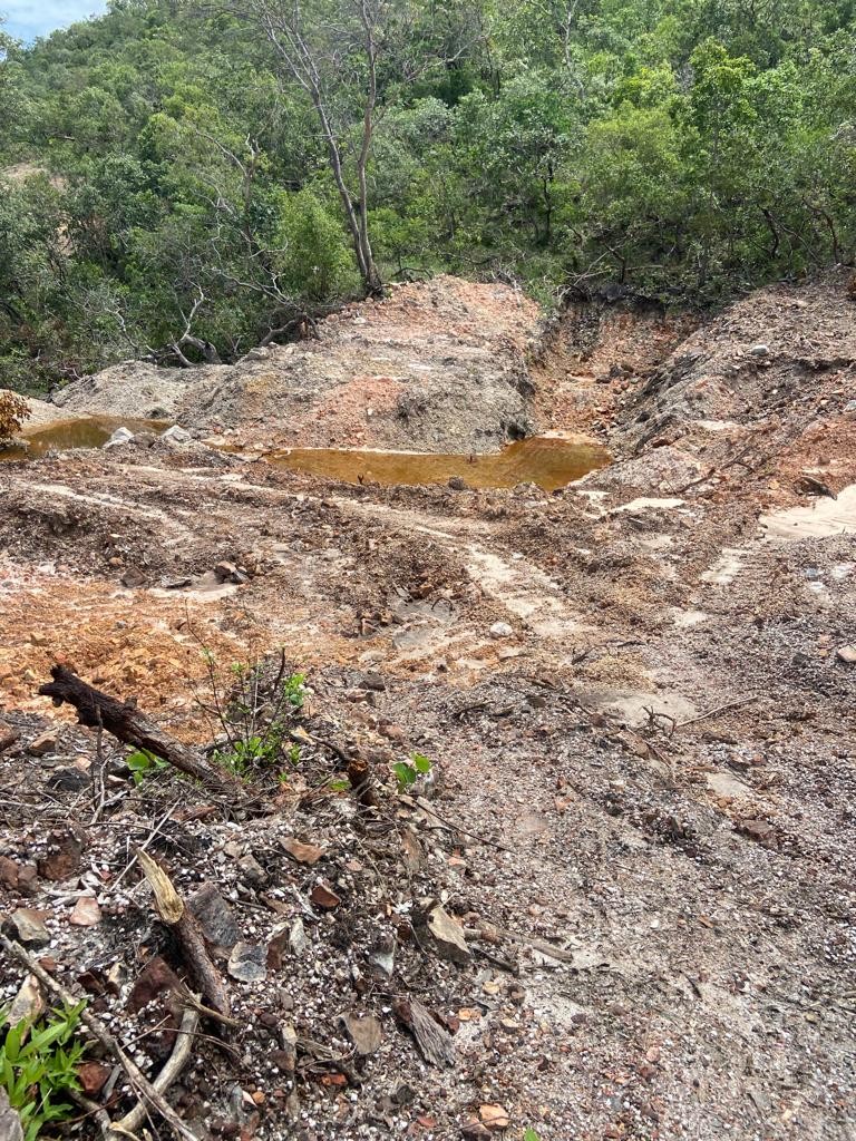 Logo que chegaram ao local, com auxílio de agentes da Secretaria Municipal de Meio Ambiente, constaram a veracidade da suspeita e identificaram que o local foi desmatado e que ali havia, aparentemente, a exploração e lavra de minérios, suspeita baseada na existência de maquinários e objetos utilizados para esse fim, apesar de naquele momento não haver pessoal no local realizando a exploração.