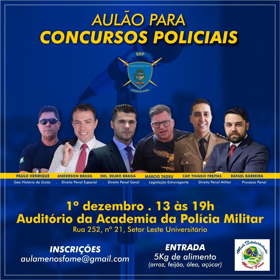 Um grupo de professores integrantes dos quadros da Secretaria de Segurança Pública vai ministrar aulas em caráter beneficente, nas quais se explorarão alguns dos temas mais relevantes das disciplinas que constituem o núcleo duro da maior parte dos concursos destinados ao preenchimento de vagas nas carreiras policiais.