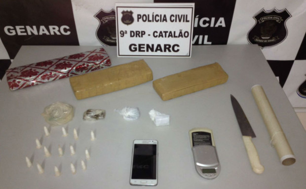 As investigações identificaram que Leomar atuava fortemente no tráfico de entorpecentes na cidade de Catalão. Nesta quinta, os policiais deram cumprimento ao mandado de busca e apreensão na residência do investigado, onde foram encontradas porções de cocaína e maconha prontas para a venda, além de três tabletes grandes de maconha, balança de precisão e apetrechos utilizados no manuseio dos entorpecentes.