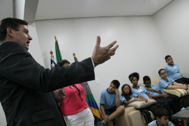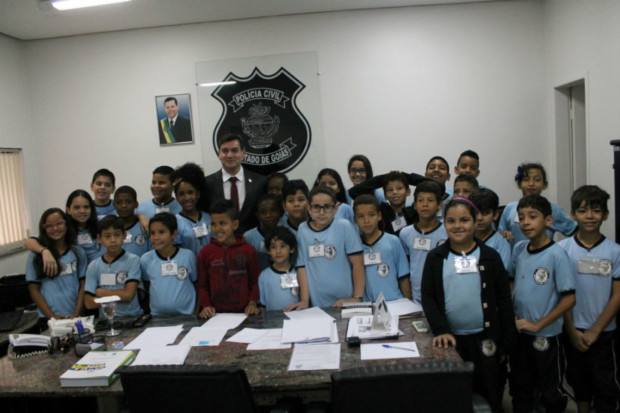 Uma turma de formandos no curso Investigador Mirim, promovido pela Escola Superior de Polícia Civil (ESPC), visitou o Gabinete da Diretoria Geral da Polícia Civil de Goiás na manhã de segunda-feira (21). Ao todo, 30 formandos foram recebidos pelo gerente de Gestão e Finanças da PCGO, delegado Eraldo José Augusco Augusco, que representou o delegado geral, Álvaro Cássio.