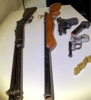 Ao adentrar a residência com a permissão de André, a equipe encontrou uma carabina Winchester calibre 38 escondida no armário do quarto do autuado, bem como uma pistola Taurus PT 58 S calibre 380 com carregador contendo 12 munições intactas, além de uma pistola bereta 950 B calibre 22. Ambas as pistolas estavam escondidas em uma cômoda.