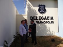 A Polícia Civil recebeu hoje pela manhã (30.08) um novo prédio para a Delegacia de Polícia de Vianópolis. Moderno e amplo, o prédio foi construído por várias mãos e nasceu da iniciativa da Juíza de Direito da localidade, Marli de Fátima Naves. A magistrada destinou a maior parte da verba oriunda das transações penais, através dos TCOS, previstas na Lei dos Juizados Especiais Criminais.