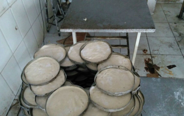 Quando a equipe chegou ao local encontrou três funcionários trabalhando. Constatadas as péssimas condições sanitárias e a desobediência à interdição, foi cumprido Mandado de Busca e Apreensão com o recolhimento, para descarte, de 162 pacotes de 500g de massa para pastel, 62 pacotes de massa para pastel em rolo 500g, 52 quilos de massa em processo de produção (pizza e pastel), e 26 quilos de embalagens plásticas. Chamou a atenção o fato das embalagens estarem guardadas no banheiro sujo.