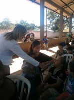 Delegada Poliana Bergamo com crianças