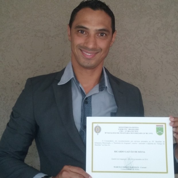 O delegado titular da Delegacia de Polícia (DDP) de Aragarças, Ricardo Galvão de Sousa (foto), recebeu do Comandante do 58º Batalhão de Infantaria Motorizada (58 BIMTZ), Coronel Zanon, o título de Amigo do Batalhão.
