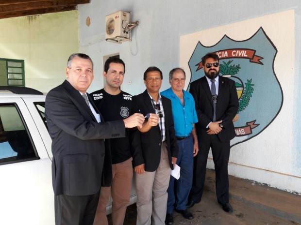 Delegado-geral entrega viatura em Varjão e visita obras da DP em Guapó