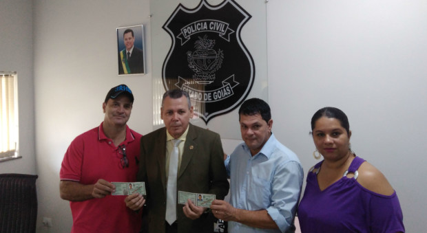 O delegado-geral da Polícia Civil de Goiás, Álvaro Cássio dos Santos, recebeu a visita de investigadores veteranos lotados no município de Jaraguá na quarta-feira (13). Na oportunidade, foram entregues aos policiais suas novas carteiras funcionais, uma vez que foram promovidos por critério de antiguidade na instituição em novembro deste ano.