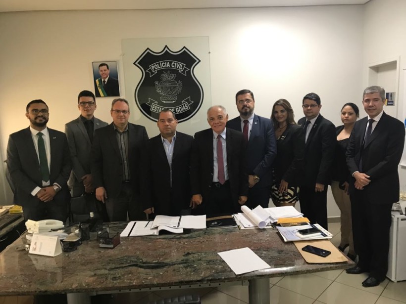 O delegado-geral da Polícia Civil, André Fernandes, recebeu na manhã desta sexta-feira (06/04) em seu gabinete uma comissão de advogados representates das comissões de Segurança Pública e de Direitos e Prerrogativas da OAB-GO e da Abracrim (Associação Brasileira dos Advogados Criminalistas). Durante o encontro, o delegado-geral se prontificou a atender um pedido dos advogados para incluir nos próximos cursos de formação de agentes e escrivães disciplinas que tratem da atuação do advogado no âmbito policial.