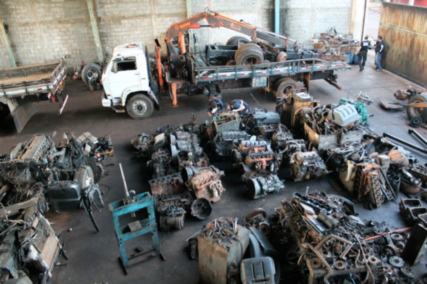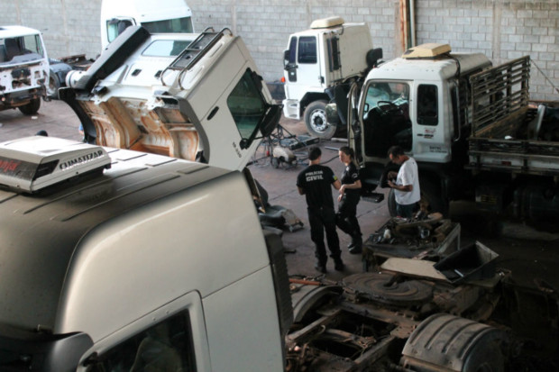 Na residência, foram encontrados motores de caminhão, alguns roubados, outros com numeração de série raspada. O preço de cada um deles foi avaliado em cerca de R$ 30 mil.