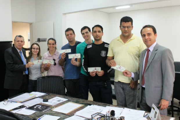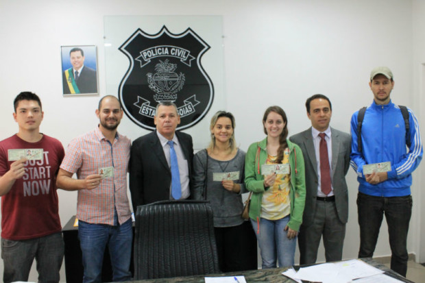 O Delegado Geral da Polícia Civil de Goiás, Álvaro Cássio, acompanhado pelo delegado geral adjunto, Marcelo Aires, entregaram mais carteiras funcionais a mais um grupo de novos papiloscopistas policiais na manhã de quinta-feira (6). No início da tarde, mais um grupo foi recebido no gabinete do delegado geral.