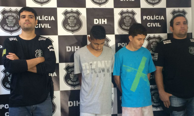 O delegado Francisco Júnior, da Delegacia de Investigação de Homicídios (DIH), apresentou na manhã desta terça-feira (30), dois homens acusados de envolvimento no assassinato de Wanderson Soares de Abreu e na tentativa de assassinato de Allyson Gonçalves Soares, fato ocorrido em maio deste ano, em uma distribuidora de bebidas no Setor Negrão de Lima.
