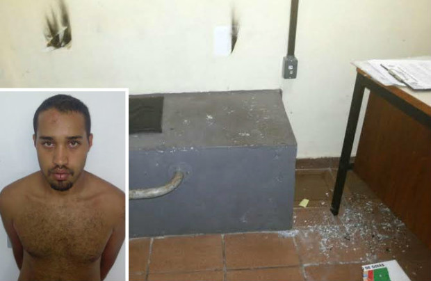 Enquanto aguardava a lavratura do procedimento, o homem tirou um isqueiro de dentro da sunga e ateou fogo em vários papéis que estavam dentro da unidade. Muito exaltado, ele também chutou a porta da delegacia até danificá-la. Ao receber voz de prisão, Jonas ainda xingou os policiais e disse que voltaria para matar a delegada Isis Leal, titular da especializada.