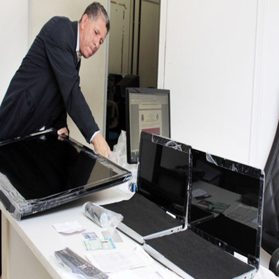 Delegado Waldemir Pereira, da Decon, com os objetios eletrônicos apreendidos com Isley