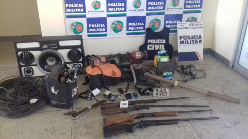 As Equipes da Delegacia de Polícia de Aragarças, Polícia Militar de Goiás e Polícia Militar de Mato Grosso fazem apreensão de objetos furtados em fazendas da região na quinta-feira (17). Após informações de que o suspeito, já identificado, venderia armas de fogo e objetos subtraídos propriedades rurais limítrofes aos municípios, diligenciou-se em sua residência.