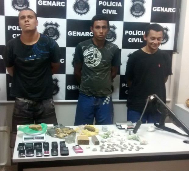 Policiais civis do Grupo Especial de Repressão a Narcóticos (GENARC) de Águas Lindas, no Entorno do Distrito Federal, prenderam, no dia 17 de maio, três homens suspeitos de tráfico de drogas.