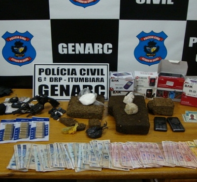 Segundo a polícia, além dos veículos, foram apreendidos nove aparelhos de celular e drogas, que estavam na casa de um dos suspeitos. O segundo suspeito de 21 anos tentou fugir ao perceber a chegada dos policiais em sua casa, mas foi recapturado. Com ele, a polícia apreendeu um revólver calibre 32 e 30 munições. Além disso, o jovem portava um tablete de maconha com 2,5 quilos. Segundo a polícia, o rapaz é suspeito de praticar dois homicídios em Itumbiara.