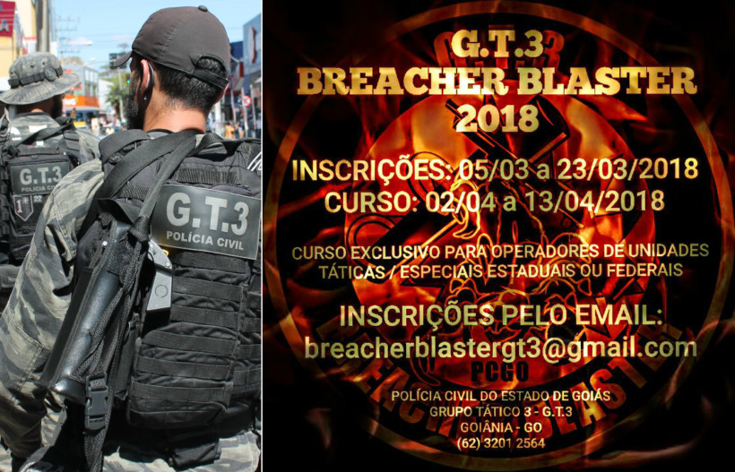 O Grupo Tático 3 (GT-3) publicou edital para a realização de um curso para breacher blaster. Ao todo, serão ofertadas 30 vagas. O processo seletivo será iniciado por meio de inscrição, a ser realizada entre os dias 05 e 23 de março exclusivamente pelo e-mail breacherblastergt3@gmail.com.