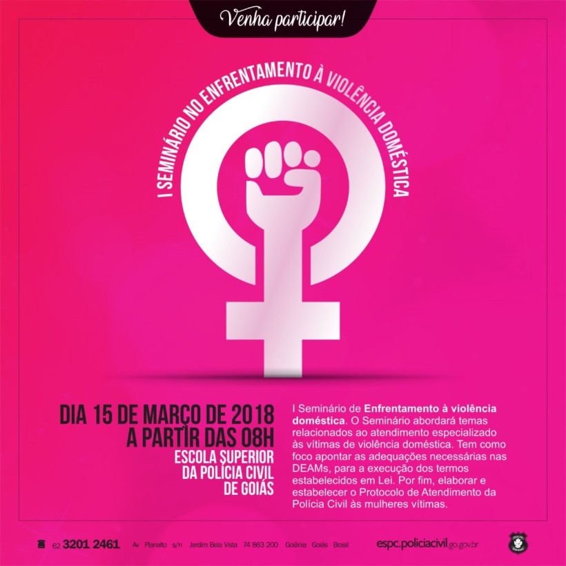 O I Seminário no enfrentamento à violência doméstica abordará temas relacionados ao atendimento especializado às vítimas de violência doméstica. Tem como foco apontar as adequações necessárias nas Delegacias Especializadas no Atendimento à Mulher para a execução dos termos estabelecidos em lei. O objetivo também é elaborar e estabelecer o protocolo de atendimento da Polícia Civil às mulheres vítimas.