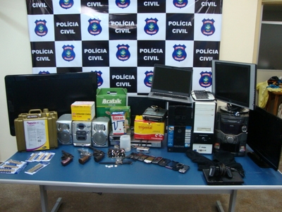 Com quatro homens, os policiais apreenderam grande quantidade de objetos apontados como produto de roubo a residências. Na lista estão computadores desktop, notebooks, televisores de LCD, videogames, aparelho de som, maquinas fotográficas, roupas, relógios, diversos celulares, três revólveres calibre 38, capuzes, munição de arma de fogo, produtos veterinários e agrícolas, e dois veículos Volkswagen também identificados como roubados – um Crossfox e um Fox –, além de documentos pessoais, brinquedos e móveis.