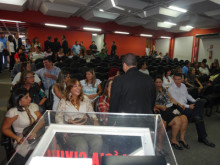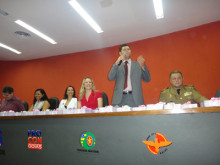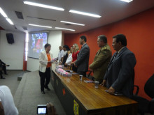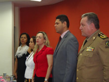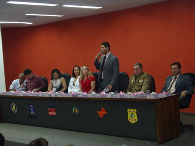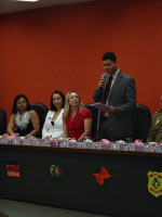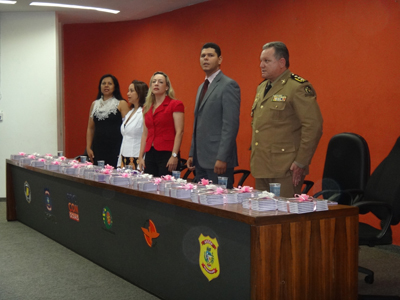 A mesa de autoridades foi composta pela  Delegada Geral da Polícia Civil, Adriana Accorsi, a presidenta do Conselho Estadual das Mulheres – CONEM, Ana Rita Macedo, a Superintendente de Polícia Técnico-Científica, Rejane Barcelos, o Superintendente de Polícia Judiciária, Delegado Antônio Pereira Gonçalves, o Superintendente de Políticas de Segurança Pública, Delegado Rogério Santana, o Gerente de Administração e Finanças, Delegado Waldson de Paula Ribeiro, e os representantes da Secretaria da Segurança Pública e Justiça,  Antônio Guido Siqueira Pratti e Danilo Viana Rabelo;  e da Polícia Militar, o Sub Comandante Ceral, Cel. Sérgio do Carmo e Silva.