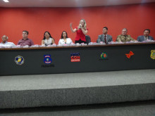 A Delegada Geral Adriana Accorsi fez seu discurso enaltecendo o trabalho de todas as policiais e  a importância da publicação do livro “Mulheres de Delegacia”, como uma ação inédita que vem fazer justiça às mulheres que trabalham e lidam com a violência e que são invibilizadas perante a sociedade.
