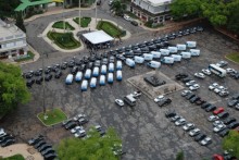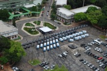 Na solenidade, que teve a participação de autoridades do governo e da Segurança, o governador fez a entrega simbólica de 30 veículos Hyundai Tucson e 7 picapes Volkswagen Amarok para grupos especializados da Polícia Civil, como o GT3. Também foram entregues 31 furgões para a Polícia Técnico-Científica, que serão utilizados no transporte de cadáveres para as unidades do IML.