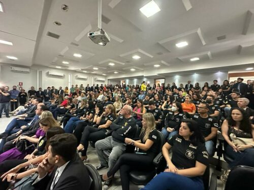 A Delegacia-Geral de Polícia Civil realizou, na manhã desta terça-feira (09/5), o evento em comemoração ao Dia do Policial Civil. A celebração foi no auditório da Secretaria de Segurança Pública e contou com a participação dos policiais de diversas delegacias e da Administração, do governador em exercício, Daniel Vilela; do secretário de Segurança, Renato Brum; do delegado-geral da PCGO, André Gustavo Corteze Ganga; delegado-geral adjunto, Murilo Polati Rechinelli; superintendente de Polícia Judiciária, Marcelo Aires; Superintendente de Gestão Integrada, Renata Cheim. Também participaram da solenidade o comandante-geral da PMGO, Cel. André Avelar; o comandante-geral do Corpo de Bombeiros, Washington Luiz Vaz; o superintendente de Polícia Técnico-Científica, Ricardo Matos da Silva; o diretor-geral da Polícia Penal, Josimar Pires; ex-deputado federal e delegado aposentado João Campos, entre outras autoridades, e os representantes dos sindicatos e associações da categoria.