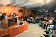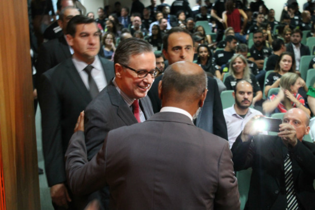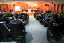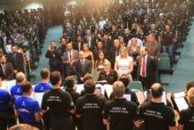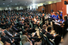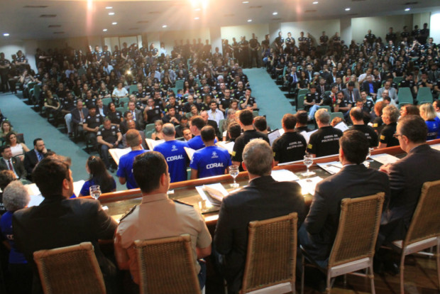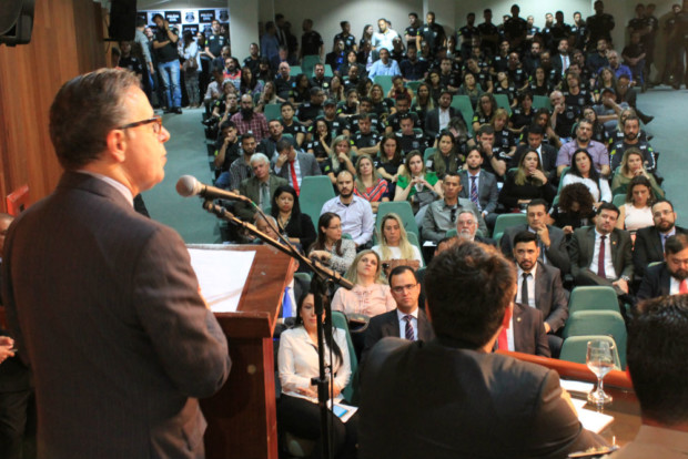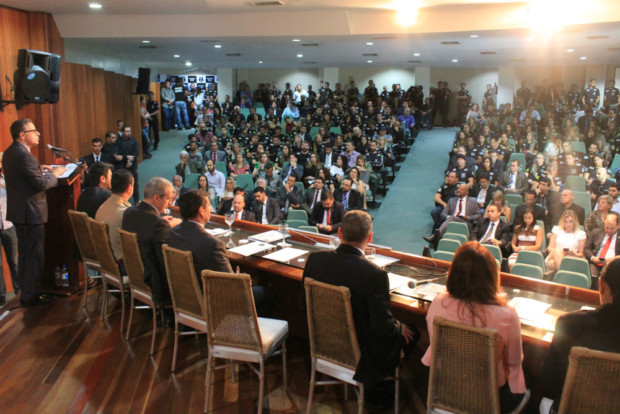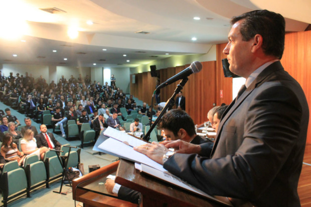 Ao discursar, o delegado-geral da Polícia Civil de Goiás, Álvaro Cássio dos Santos, saudou os novos policiais civis, recentemente nomeados e ingressos no Curso de Formação em andamento na Escola Superior de Polícia Civil, presentes no evento. “Vocês estão sendo aguardados com muito entusiasmo”, salientou o dirigente da PCGO. Cássio ressaltou ainda o empenho feito junto a outras esferas do Governo de Goiás no sentido de garantir a promoção de delegados, agentes, escrivães e papiloscopistas, bem como para a realização de novos concursos públicos, não só para delegado como para agente e escrivão. Ele destacou, nessas ações, o apoio que tem recebido do secretário Ricardo Balestreri.