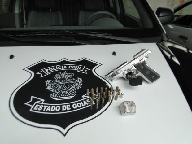 Policiais Civis de Caldas Novas apreenderam na residência de Rickley Bruno Pena de Lima, de 20 anos de idade, na manhã da última segunda-feira, dia 28, uma pistola Taurus, calibre 380, carregada com 19 munições e uma porção de maconha pesando aproximadamente 37 gramas.