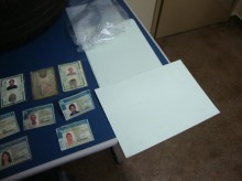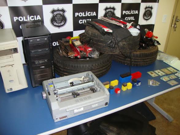 Na residência, foram apreendidos dezenas de documentos pessoais tomados de vítimas durante os assaltos, papel moeda para falsificação de documentos veiculares, uma impressora para preenchimento de Certificado de Registro e Licenciamento de Veículo (CRLV), etiquetas e pinos para remarcação de chassis.