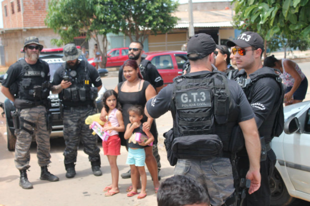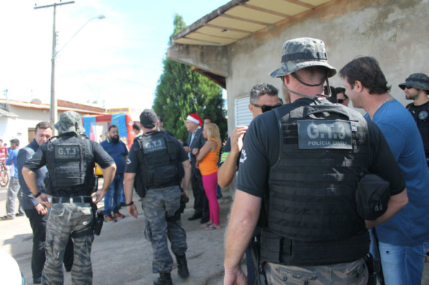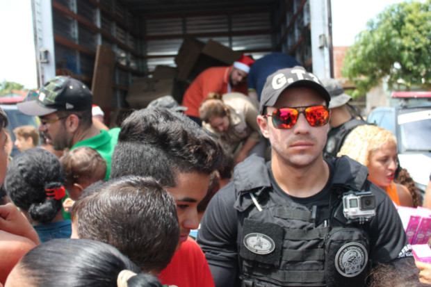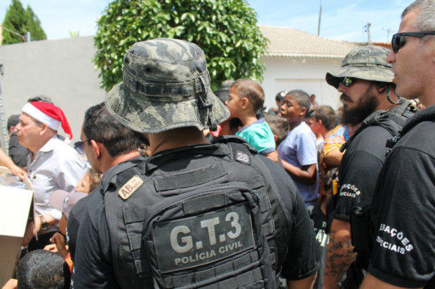Estiveram presentes à festa que marcou a entrega dos brinquedos o delegado-geral da PCGO, Álvaro Cássio dos Santos, o gerente de Planejamento Operacional da Superintendência de Polícia Judiciária (SPJ), delegado Gustavo Ferreira, além de equipes da Delegacia Estadual de Repressão a Narcóticos (Denarc) e do Grupo Tático 3 (GT-3). Entusiasmadas e admiradas com a visão das viaturas dos grupos especializados, várias crianças tiraram fotos com os policiais das equipes especializadas.