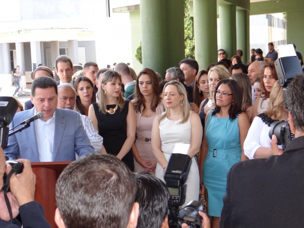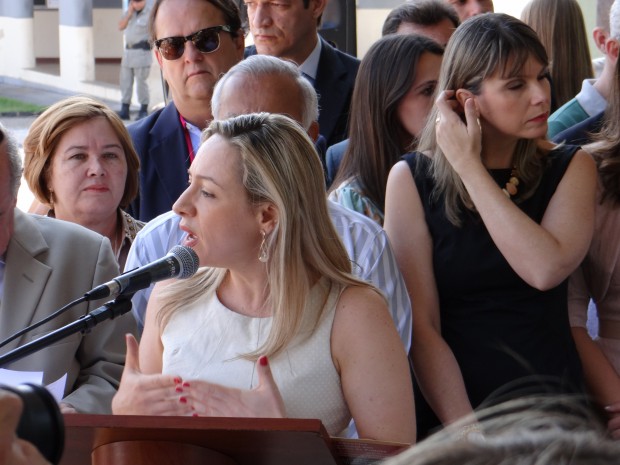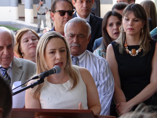 Na solenidade de entrega estavam presentes o governador Marconi Perillo, a secretária da Semira, Gláucia Teodoro, as delegadas que atuam nas Deams e Neams entre outras autoridades. Adriana Accorsi falou da importância de fortalecer o trabalho da Polícia Civil no combate à violência contra a mulher e referiu-se ao trabalho dos policiais, que lidam com a situação de violência diariamente, e que portanto, necessitam de apoio no reaparelhamento das delegacias e principalmente na capacitação e atualização de seus conhecimentos em relação às políticas de gênero, para entender como se dá o processo da violência doméstica no âmbito sócio-familiar. A delegada anunciou que em novembro realizará um encontro com todos os policiais – delegados – escrivães e agentes que atuam nas Deams. Já o governador Marconi Perillo enalteceu o trabalho da Polícia Civil no combate à violência contra a mulher e disse que este é um dos compromissos da sua gestão.