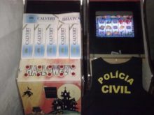 Policiais Civis de Leopoldo de Bulhões, em operação conjunta com PMs, apreenderam duas máquinas caça-níqueis e cigarros contrabandeados do Paraguai, no último dia 21. Os proprietários de estabelecimentos comerciais José Gonçalves Freire e Nilson Francisco da Silva foram flagrados cometendo os delitos naquela cidade.