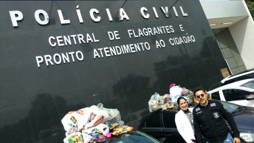 Policiais da Central de Flagrantes entregam presentes arrecadados em campanha solidária