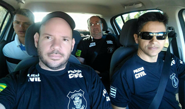 A Policia Civil de São Luís De Montes Belos deu cumprimento a mandado de prisão preventiva em desfavor de Caio Alves de Souza (à esquerda no banco traseiro), 21 anos, no domingo (18). Na companhia de seu avô, que se encontra preso, ele praticou Homicídio contra Ielo em Dezembro do ano passado. O corpo da vítima foi jogado à porta do local que serve à realização da feira agropecuária do município. Caio foi preso no povoado de Gameleira da Lapa, município de Sítio do Mato, na Bahia.
