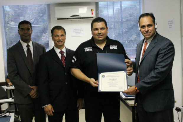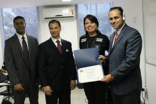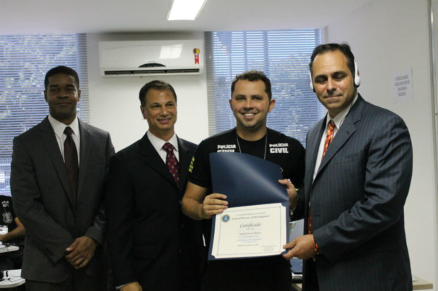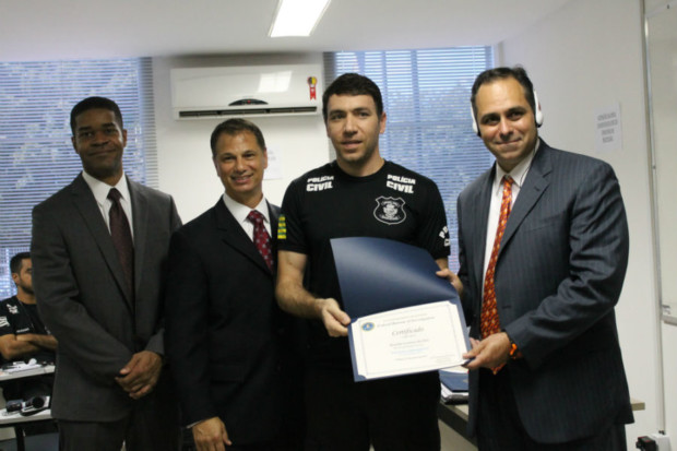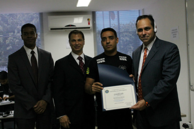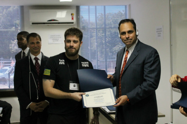 Foi encerrado na manhã de sexta-feira (21) o curso sobre interrogatório ministrado por agentes do Federal Bureau of Investigations (FBI) na Escola Superior da Polícia Civil (ESPC). O evento foi prestigiado pelo Secretário de Segurança Pública e Administração penitenciária, Ricardo Balestreri; pelo delegado-geral adjunto da Polícia Civil de Goiás, Marcelo Aires Medeiros, e pelo diretor da ESPC, delegado Deusny Aparecido. Cerca de 45 alunos receberam certificados de conclusão do curso, fruto de uma parceria entre a Secretaria Nacional de Segurança Pública (Senasp) e ESPC.