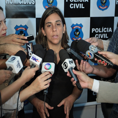 Adriana Ribeiro fala com jornalistas sobre a prisão dos assassinos