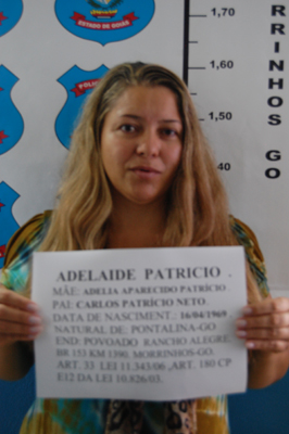 Policiais Civis de Morrinhos prenderam em flagrante na noite de ontem, 25/04, Adelaide Patrício, de 43 anos, pela prática dos crimes de tráfico de drogas, receptação e posse de munição. Adelaide estava sendo investigada há alguns meses por vender drogas às margens da BR-153, no povoado Rancho Alegre, e tinha como seus principais “clientes”, os caminhoneiros que utilizam a rodovia e os travestis e prostitutas quem fazem ponto em um posto de combustível situado no povoado.