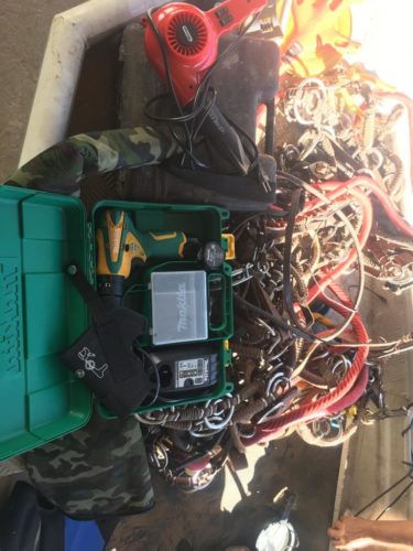 Dentre os diversos objetos encontrados no local, estavam três motosserras, um furador, arreios para cavalos, materiais de pesca de grande valor e um barco no valor aproximado de R$ 7 mil reais, todos produto de furto.