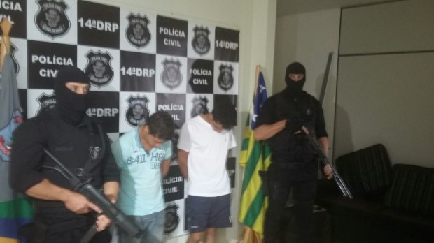 Policiais civis do Genarc e Gepatri de Jataí, com apoio de uma equipe da PM local, prenderam na passagem de terça para quarta-feira dois homens responsáveis por um roubo ocorrido horas antes na cidade de Mineiros. Os assaltantes foram identificados como Diego Fonseca Borges e Franklin Bruno Costa Braga e com a dupla os policiais apreenderam a camionete GM/S10 roubada, televisores e celulares, além de um Hyundai/Azera utilizado para a prática do crime.