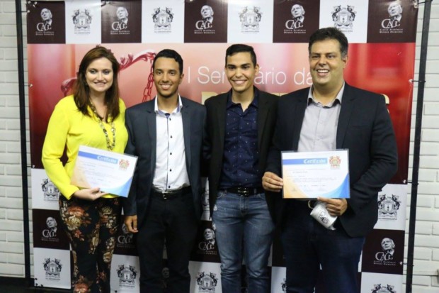 Os delegados da Polícia Civil Eduardo José do Prado e Paula Meoti foram os destaques da última terça-feira (01/11) no I Seminário Carreiras Jurídicas do Centro Universitário de Goiás – Uni-Anhanguera. Ambos palestraram no evento e, ao final, foram homenageados com um certificado e souvenirs da faculdade de Direito.