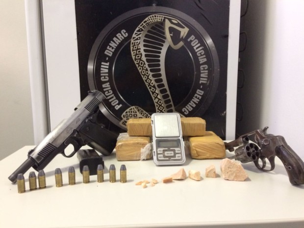 A Delegacia Estadual de Repressão a Narcóticos (Denarc), através de investigação presidida pela delegada Marcella Orçai e desenvolvido por sua equipe, realizou, no dia 27 de março, a lavratura de auto de prisão em flagrante em desfavor de Gabriel Guilherme da Silva, de 19 anos, e Patrícia Bezerra da Silva, de 22 anos, pela prática do crime do art. 33 e 35 da Lei 11.343/06 e arts. 12 e 16 da Lei 10826/03 “Estatuto do Desarmamento”. A prisão se deu no Setor Jardim Curitiba IV, em Goiânia. No local, foram encontradas porções de maconha e crack, uma balança de precisão, uma pistola IMBEL calibre .40 com numeração raspada e um revólver calibre .32.