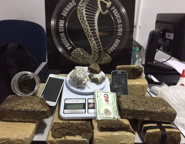 A Delegacia Estadual de Repressão a Narcóticos (Denarc), através de investigação presidida pela delegada Marcella Orçai, prendeu em flagrante, nesta quarta-feira (26), no Setor Goiânia 2, Lucas Rios Moura Fé, de 33 anos, pelo art. 33 da Lei 11343/06. No local da prisão, foram encontrados aproximadamente 8,2kg de maconha, balança de precisão e caderno de anotações de vendas. Lucas já foi condenado três vezes por roubo e se encontrava foragido do regime semiaberto.