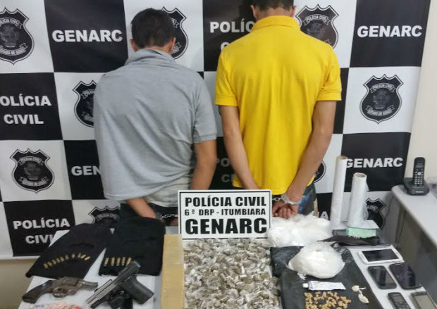 Policiais Civis do Grupo Especial de Repressão a Narcóticos (Genarc) de Itumbiara, coordenados pelo delegado Rogério Moreira, apreenderam em flagrante, no dia 15 de dezembro, , dois adolescentes suspeitos de tráfico de drogas e roubos em Itumbiara. Em cumprimento a diligências visando apurar denúncias anônimas, os agentes conseguiram surpreender os infratores em uma casa no bairro Buriti III, naquele município.