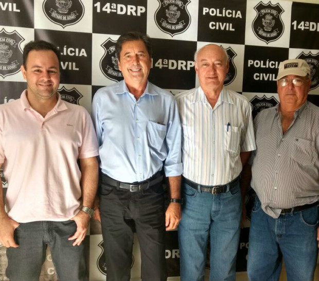 O ex-prefeito de Aparecida de Goiânia, Maguito Vilela, e proprietários rurais de Jataí fizeram, na manhã desta sexta-feira (7), uma visita de cortesia à sede 14ª Delegacia Regional de Polícia. Na ocasião, agradeceram o empenho da Polícia Civil na condução de investigações criminais e manifestaram apoio aos trabalho realizado pela instituição. Durante a visita, Maguito Vilela elogiou a atuação do delegado-geral Álvaro Cássio à frente da direção da Polícia Cicil de Goiás.