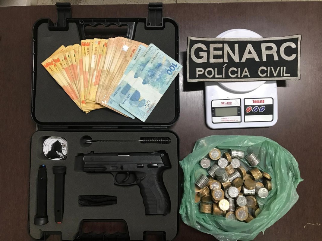 Depois de prenderem um homem por tráfico de drogas, identificaram o imóvel onde uma mulher guardava uma pistola calibre 380, com dois carregadores, 06 munições intactas e R$ 4.258,00 em dinheiro. A mulher foi atuada pelo delito de posse irregular de arma de fogo de uso permitido, sendo colocada em liberdade após pagar fiança.