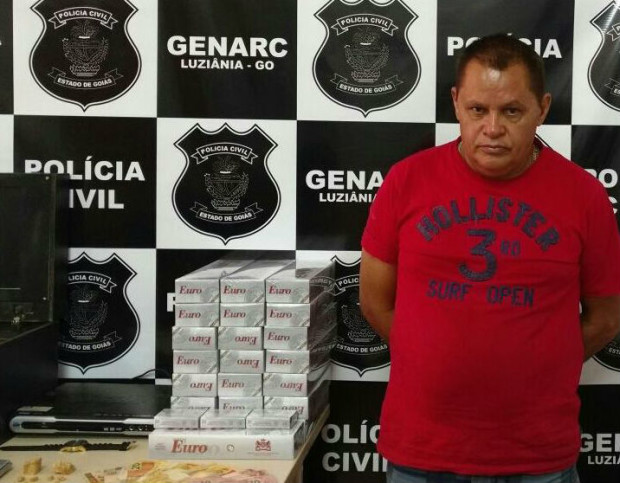 Policiais civis do Grupo Especial de Repressão a Narcóticos (Genarc) de Luziânia, coordenados pela delegada Caroline Matos, em cumprimento a mandado de busca e apreensão expedido pelo Poder Judiciário de Luziânia, prenderam em flagrante, no dia 22 de outubro de 2015, Antônio Sabino da Silva, 56 anos, pelos crimes de tráfico de drogas e contrabando de cigarros, bem como pela contravenção de jogo de azar.